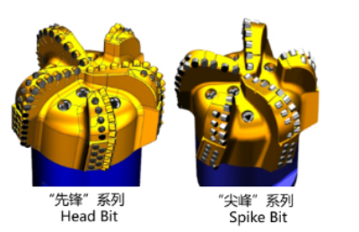 ▲“鋒”系列PDC鉆頭:“尖峰” PDC鉆頭采用尖斧齒切削結構,對致密泥巖、膏巖、硬塑性等難鉆地層具有較強適應性,破巖效率 較常規金剛石鉆頭有顯著提升;“先鋒” PDC鉆頭采用雙曲斧形切削結構,對硬地層及硬夾層具有較強適應性,破巖效率及鉆頭壽命較 常規金剛石鉆頭有顯著提升。